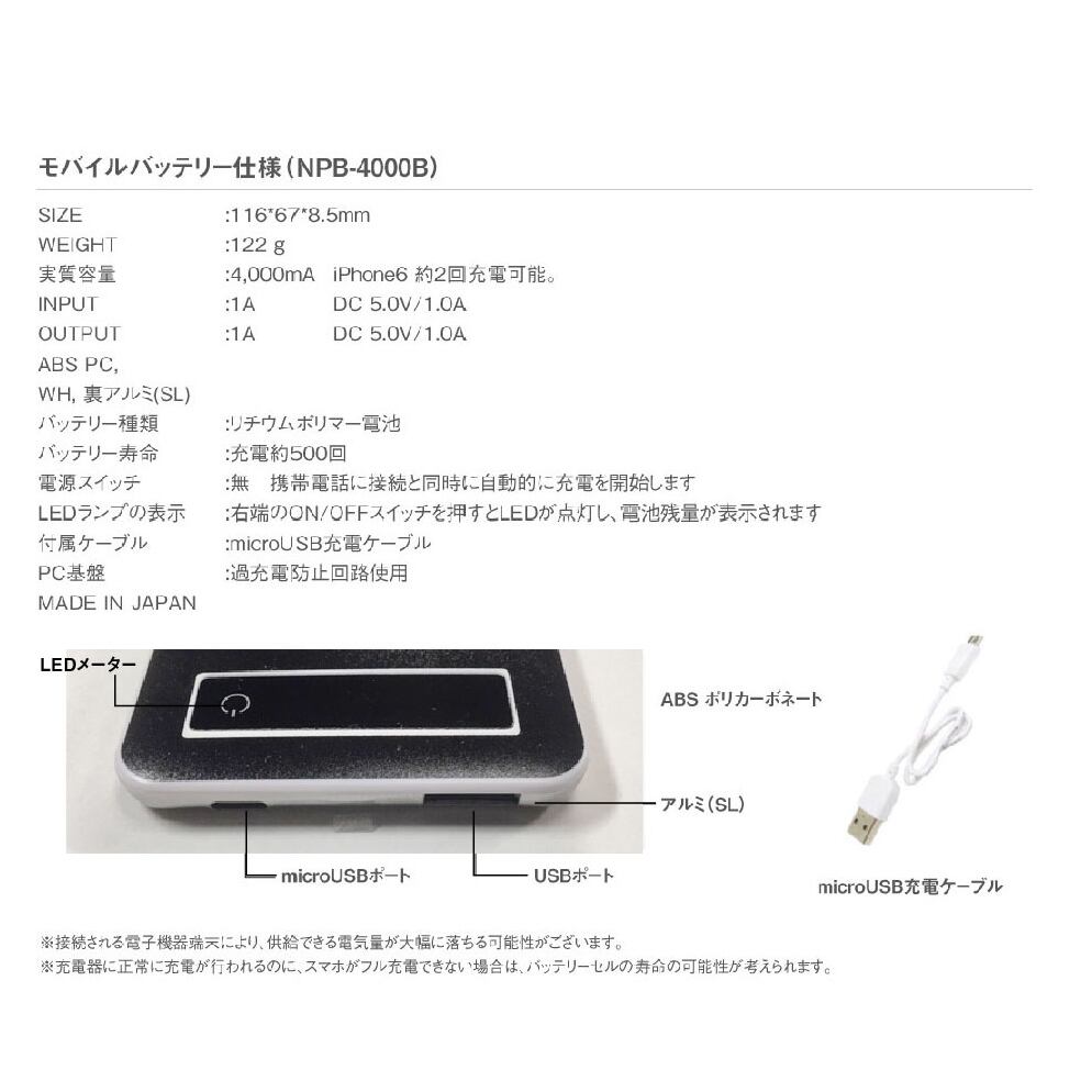 モバイルバッテリー 4000mAh 極薄 軽量 iPhone android スマホ 充電器 スマートフォン